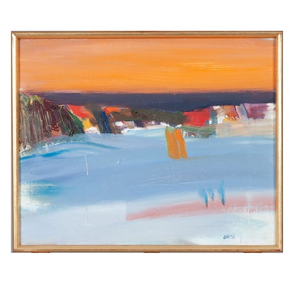 1960's, Swedish Oil Painting, 'Sunset Seascape,' LARS BERTLE