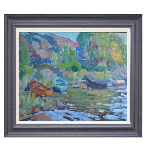 Mid-Century, Swedish Oil Painting, ''Fishing Boat' Åke Winnberg (1912–1974)