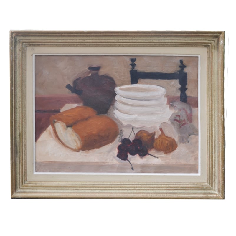 Mid 20thC, French Still Life, 'Bread and Cherries.'