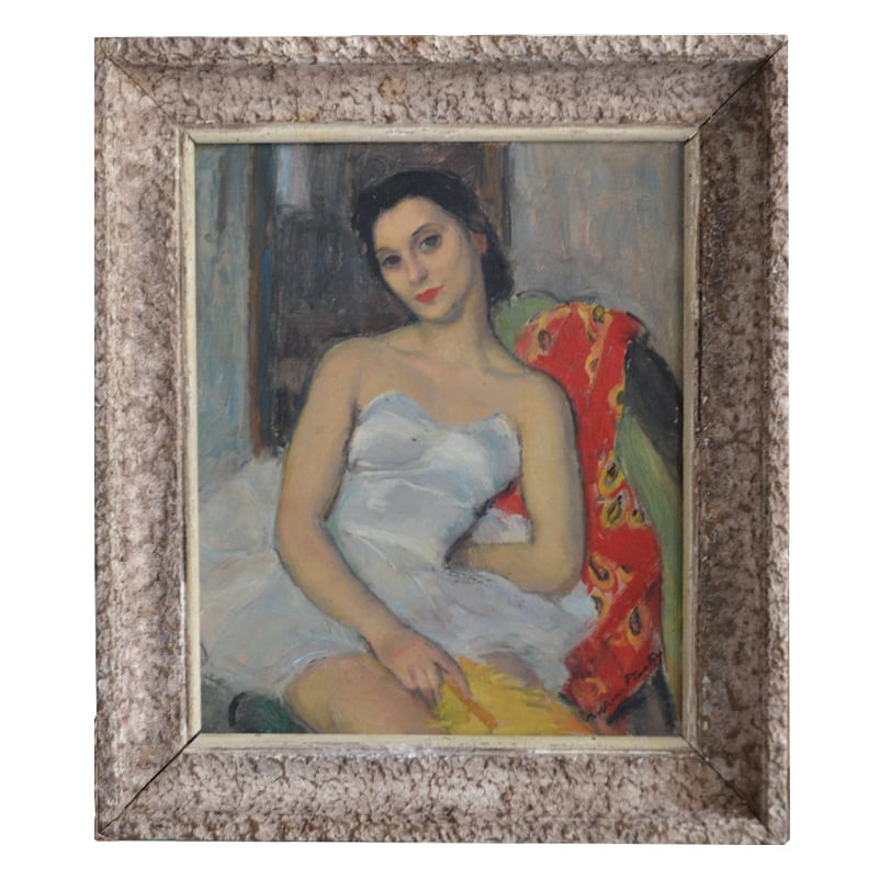 1955, French Oil Painting, 'Ballerina with a Feather Fan.' MADALEINE PLANTEY (1890-1985)