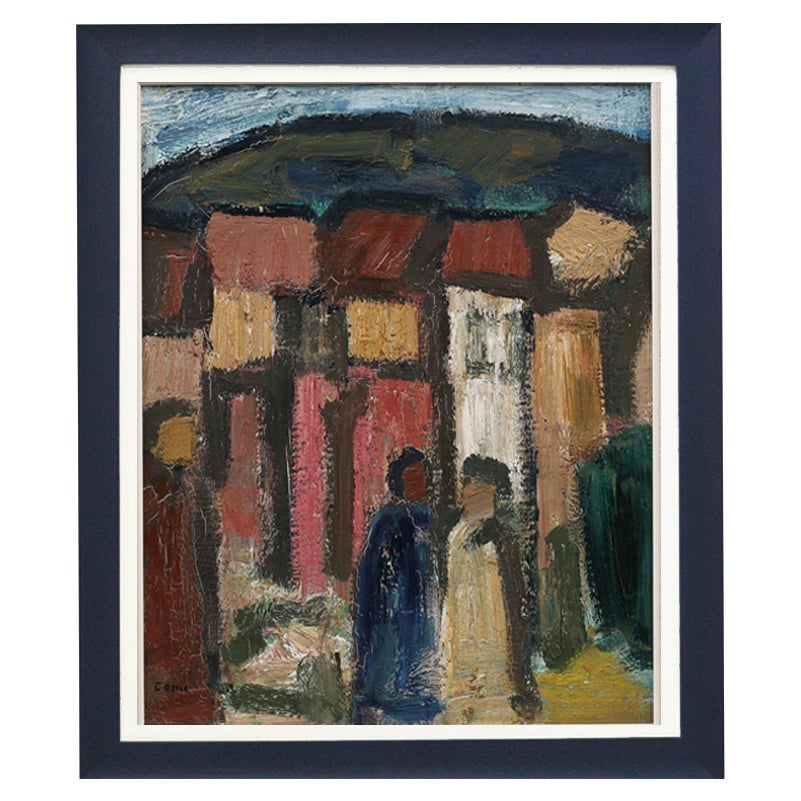 Mid Century Swedish Oil Painting, 'Street Scene.'